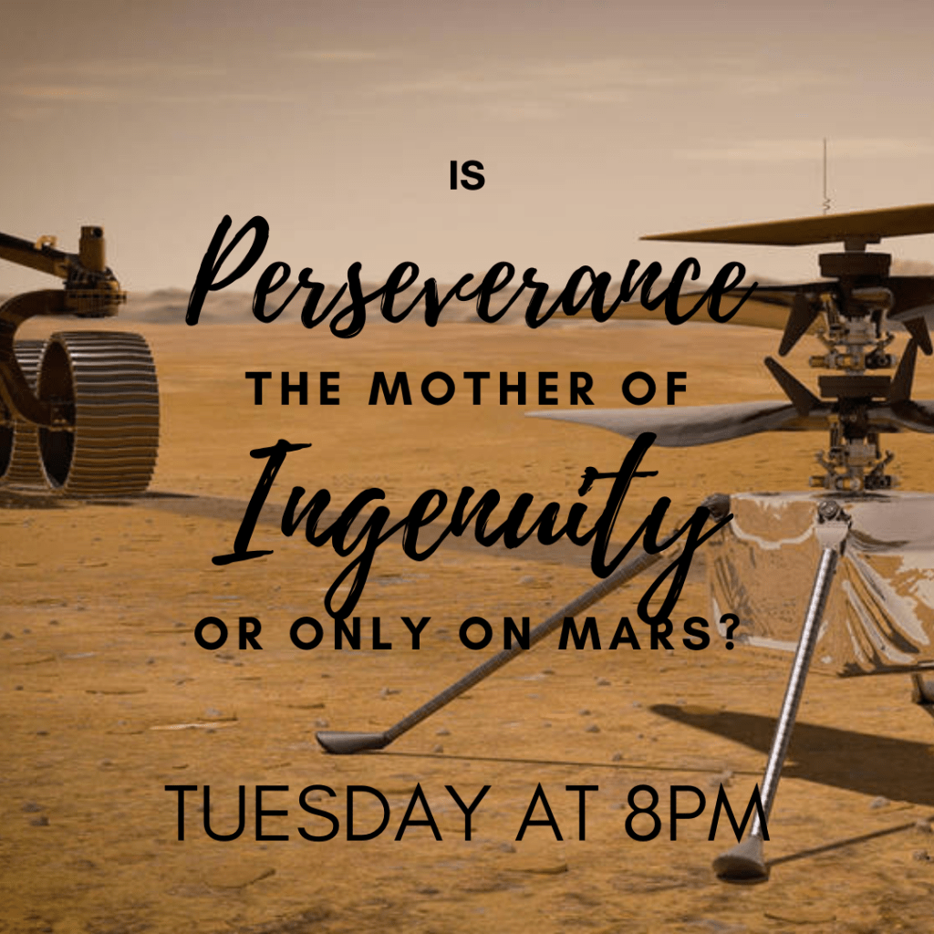 Which comes first – Ingenuity or Perseverance? Tuesday 4 May at 8pm